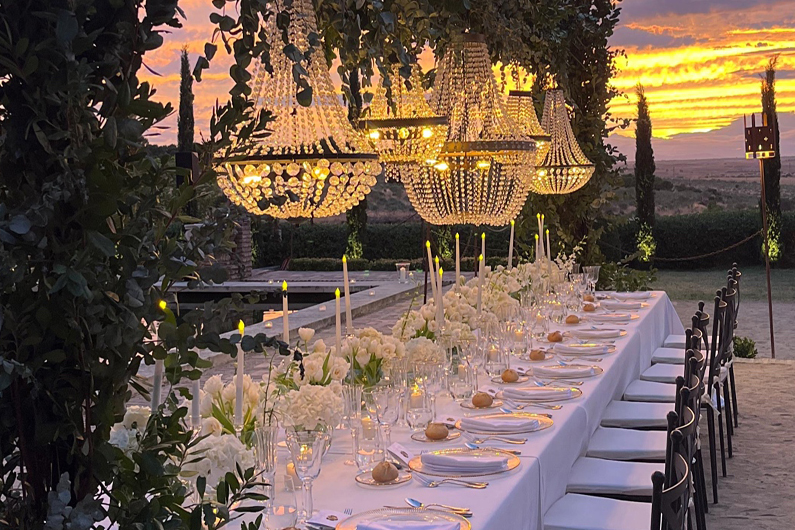 Versatilidad de espacios en interior y exteriores. La Finca permite jugar con los diferentes espacios. Ya sea una cena más íntima en el porche de la casa, una fiesta en la pradera bajo los árboles, una boda en el invernadero, o tomar un cocktail en la zona de la piscina. Los magníficos salones de la casa decorados por el prestigioso estudio de interiorismo Sierra + de la Higuera, se abren al espacio de la pérgola, de manera que ambos espacios se pueden convertir en uno.
